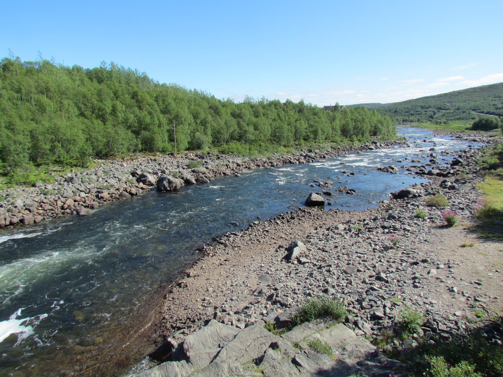 ja laskeudumme Tenon vartta alaspäin. Paras lohen kalastusaika on käsillä ja pyyntikuntia oli tiheässä perhonvedossa jalan ja veneillä.